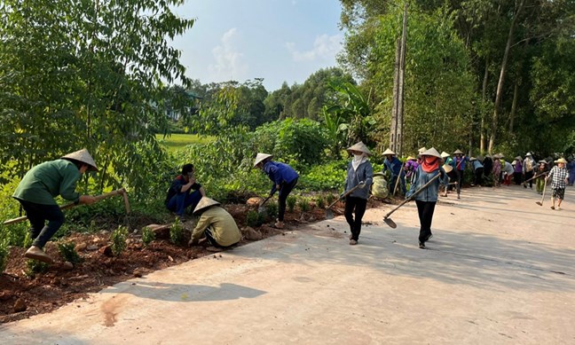 | Nhân dân thôn Đền Trắng, xã Đông Sơn (Yên Thế) trồng cây xanh, dọn dẹp vệ sinh đường làng, ngõ xóm. |