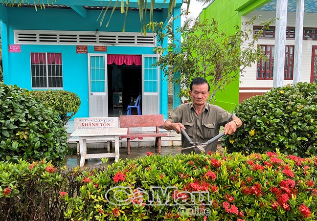 | Người dân xã Vĩnh Phước chăm sóc hàng rào cây xanh, hoa kiểng trước nhà để làm đẹp cảnh quan nông thôn |