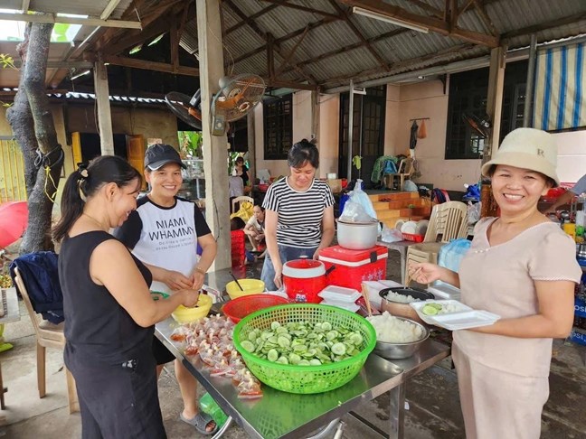 | Các hội, đoàn thể phường Điện Bàn Bắc nấu 1.800 suất ăn phục vụ bệnh nhân và người dân vùng lũ. Ảnh: Đ.B |