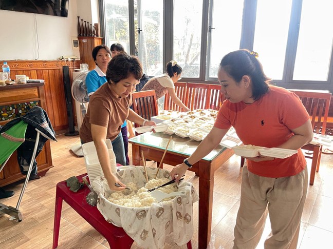 Trong ngày 19/11 và 20/11, tại địa chỉ 86-88 Chương Dương (phường Quy Nhơn Nam), người ra vào náo nhiệt hơn hẳn ngày thường, bởi đây là nơi tập trung chuẩn bị cơm, nước uống và điểm tập kết các nhu yếu phẩm để hỗ trợ người dân vùng lũ.