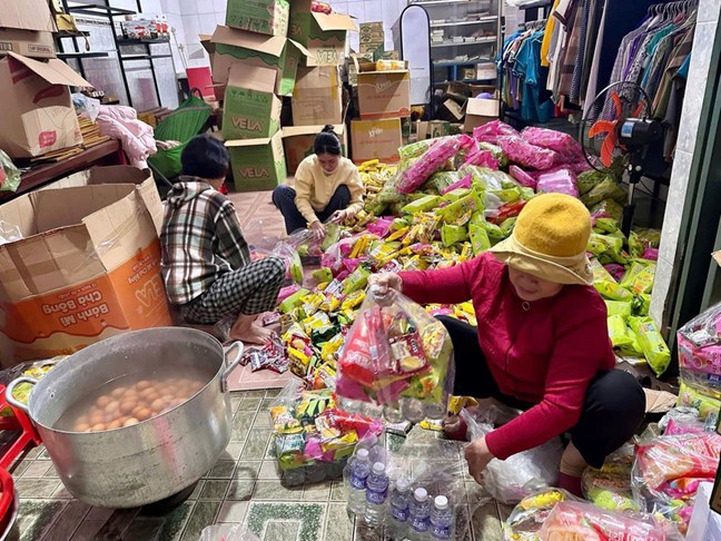 | Câu lạc bộ Tình nguyện viên Chữ thập đỏ Bạch Mai Trang (thuộc Hội Chữ thập đỏ tỉnh Gia Lai) chuẩn bị các suất quà gửi tặng người dân vũng lũ ở Quy Nhơn. Ảnh: ĐVCC |