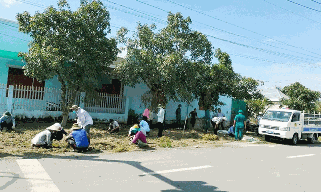 | Nhân dân ấp Bồ Đề tham gia dọn cỏ tuyến đường, xây dựng cảnh quan sáng - xanh - sạch - đẹp. |