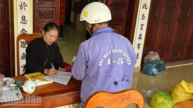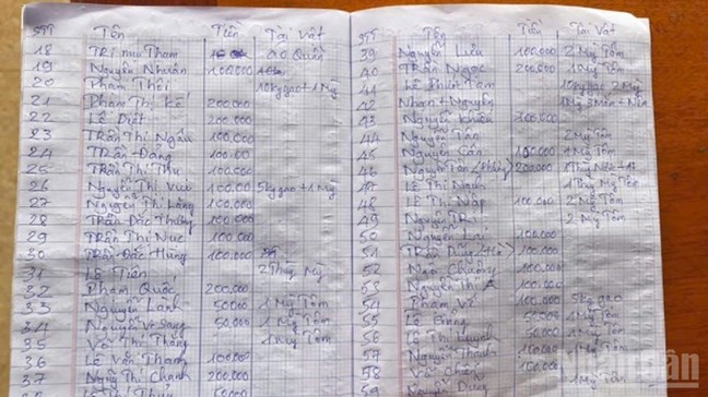 Ở góc đình làng, trưởng làng Trần Quang Cườm, 26 tuổi, tất bật với việc ghi chép, tiếp nhận tấm lòng của bà con trong làng. Người quê không có nhiều, người góp ít gạo nếp, người thêm thùng mì tôm, người góp 50 nghìn đồng, có người gửi 100 nghìn đồng... tất cả đều được ghi chép tỉ mỉ vào quyển vở kẻ ô li.