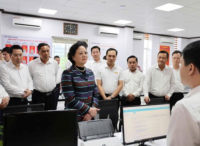 | Ủy viên Trung ương Đảng, Phó Thủ tướng Chính phủ Phạm Thị Thanh Trà kiểm tra hoạt động của Trung tâm Phục vụ hành chính công phường Cam Đường, tỉnh Lào Cai _Nguồn: chinhphu.vn |