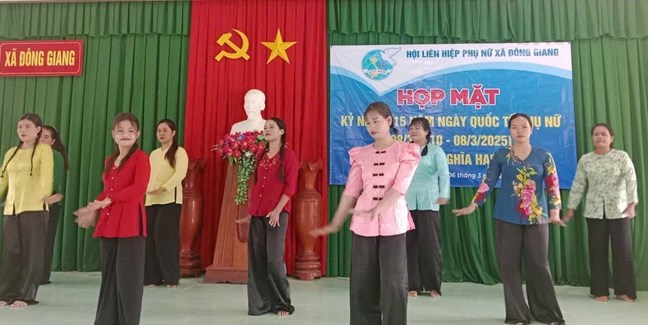 | Phụ nữ vùng đồng bào DTTS tự tin trình diễn các tiết mục dân vũ trong buổi họp mặt kỷ niệm Ngày Phụ nữ Việt Nam 20/10 |