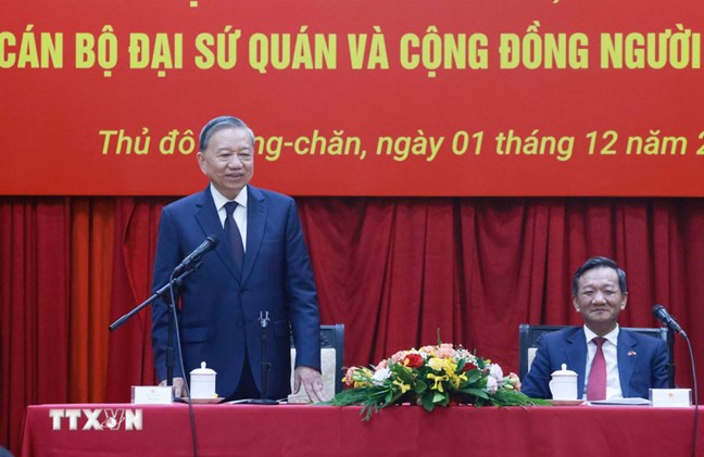 Khẳng định đồng bào ta ở nước ngoài luôn là bộ phận gắn bó máu thịt, không thể tách rời của dân tộc Việt Nam, Tổng Bí thư nêu rõ, Đảng và Nhà nước sẽ tiếp tục hoàn thiện chính sách hỗ trợ kiều bào đầu tư, học tập, nghiên cứu, khởi nghiệp, giảng dạy tiếng Việt, chuyển giao tri thức và tham gia các hoạt động văn hóa, đối ngoại nhân dân. Tổng Bí thư tin tưởng cộng đồng người Việt tại Lào tiếp tục phát triển, ngày càng ổn định, hòa nhập, tiếp tục là cầu nối vững chắc và trực tiếp vun đắp quan hệ hữu nghị đặc biệt Việt Nam – Lào; các hội đoàn tiếp tục phát huy vai trò kết nối kiều bào để tạo dựng một cộng đồng gắn kết, cùng kề vai sát cánh hỗ trợ lẫn nhau.