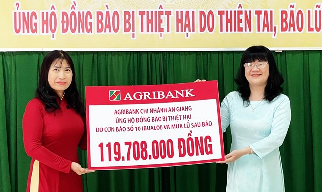 Chiều cùng ngày, Ngân hàng Nông nghiệp và Phát triển Nông thôn (Agribank) Chi nhánh An Giang đến Ủy ban MTTQ Việt Nam tỉnh An Giang trao số tiền ủng hộ 119,708 triệu đồng, trích từ nguồn vận động toàn thể người lao động Agribank Chi nhánh An Giang đóng góp.