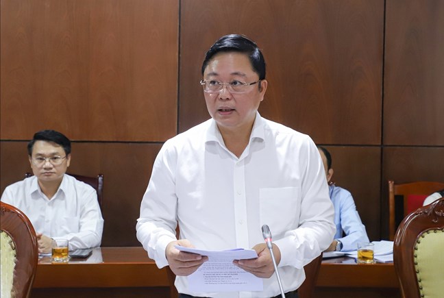 | Chủ tịch Ủy ban MTTQ Việt Nam thành phố Lê Trí Thanh báo cáo tại buổi làm việc. Ảnh: NGỌC PHÚ |