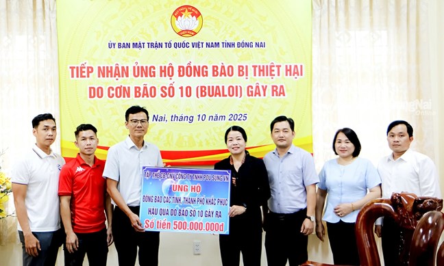 (Mặt trận) - Ngày 22/10, thay mặt Ban Thường trực Ủy ban MTTQ Việt Nam tỉnh, Phó Chủ tịch Ủy ban MTTQ Việt Nam tỉnh Đồng Nai Lưu Thị Hà đã tiếp nhận đóng góp ủng hộ đồng bào khắc phục hậu quả thiên tai do Trường TH - THCS - THPT Song ngữ Á Châu ủng hộ gần 110 triệu đồng; tập thể cán bộ, công nhân viên Công ty TNHH Pou Sung Việt Nam ủng hộ 500 triệu đồng.