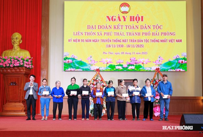 Tại ngày hội, Thành ủy, HĐND, UBND, Ủy ban MTTQ Việt Nam thành phố trao 10 suất quà tặng các hộ hoàn cảnh khó khăn trong xã.