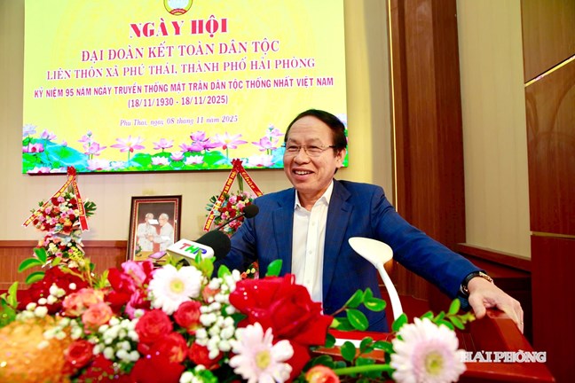 (Mặt trận) - Sáng 8/11, tại hội trường trung tâm xã Phú Thái, Ủy ban MTTQ Việt Nam xã Phú Thái tổ chức Ngày hội Đại đoàn kết toàn dân tộc, kỷ niệm 95 năm Ngày thành lập Mặt trận Dân tộc Thống nhất Việt Nam, Ngày truyền thống MTTQ Việt Nam (18/11/1930 - 18/11/2025). Ông Lê Tiến Châu, Ủy viên Trung ương Đảng, Bí thư Thành ủy, Trưởng Đoàn đại biểu Quốc hội thành phố dự và phát biểu với Ngày hội.