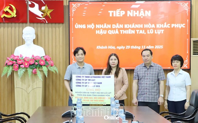 Theo đó, Tổng Công ty Đầu tư phát triển Nhà và Đô thị HUD hỗ trợ hơn 2.000 phần quà là nồi cơm điện và bếp gas trị giá 1,5 tỷ đồng; các Công ty TNHH Letrading Việt Nam, Công ty Cổ phần Thương mại A&T, Công ty Cổ phần D&A Việt Nam và Công ty Cổ phần Energy Ocg hỗ trợ 100 phần quà là bếp gas, bình gas, nồi cơm điện, gạo trị giá 300 triệu đồng nhằm chung tay cùng tỉnh Khánh Hòa hỗ trợ người dân khắc phục hậu quả mưa lũ.