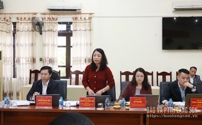 | Bà Đoàn Thu Hà, Phó Bí thư Tỉnh ủy, Chủ tịch Ủy ban MTTQ Việt Nam tỉnh phát biểu tại kỳ họp |