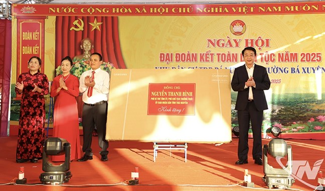 Nhân dịp này, ông Nguyễn Thanh Bình đã tặng quà một số hộ nghèo, gia đình có hoàn cảnh khó khăn trên địa bàn phường; trao quà của Tỉnh ủy - HĐND - UBND - Ủy ban MTTQ Việt Nam tỉnh cho tổ dân phố Bá Xuyên 3. Cá nhân đồng chí Nguyễn Thanh Bình tặng tổ dân phố Bá Xuyên 3 một tivi 75 inch.