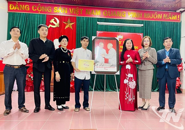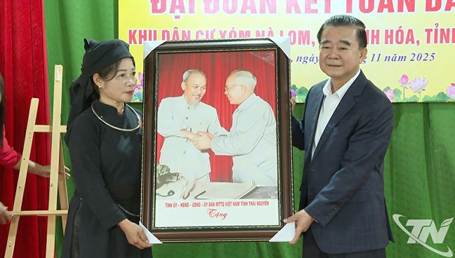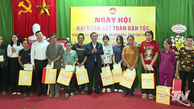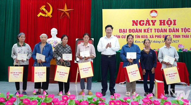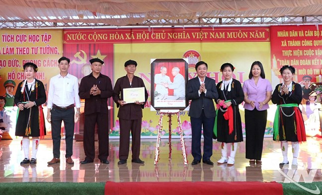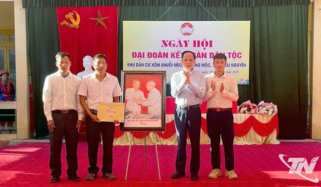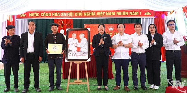 Nhân dịp này, thay mặt lãnh đạo tỉnh, bà Hoàng Thu Trang tặng khu dân cư một ảnh Bác Hồ và Bác Tôn, cùng 10 triệu đồng; tặng 15 suất quà cho hộ nghèo, mỗi suất gồm túi quà và 1 triệu đồng. Thôn biểu dương, khen thưởng các tập thể, cá nhân tiêu biểu và công bố danh hiệu Gia đình văn hóa, Khu dân cư văn hóa năm 2025.