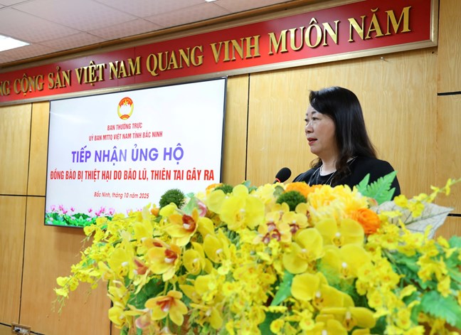 Tiếp nhận ủng hộ, đồng chí Nguyễn Thị Hà - Ủy viên Ban Thường vụ Tỉnh ủy, Chủ tịch Ủy ban MTTQ Việt Nam tỉnh trân trọng cảm ơn những tình cảm tốt đẹp của Thành Ủy, HĐND, UBND, UB MTTQ Việt Nam thành phố và Nhân dân thành phố Huế đã dành cho tỉnh Bắc Ninh.
