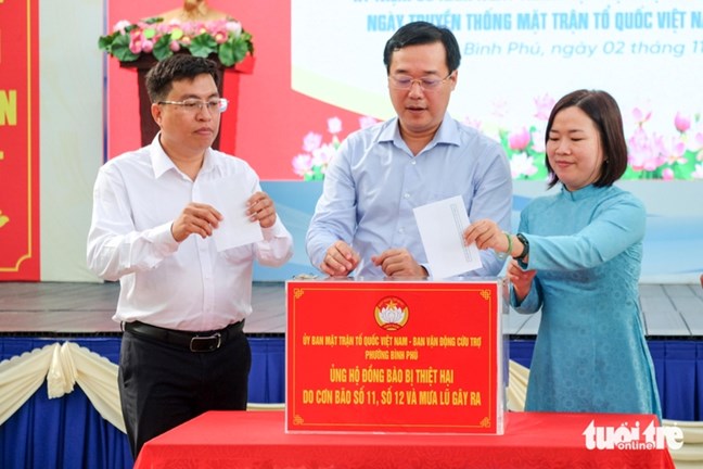 | Ban công tác Mặt trận khu phố 21 phát động quyên góp ủng hộ đồng bào miền Trung và miền Bắc bị thiệt hại do bão lũ - Ảnh: PHƯƠNG NHI |