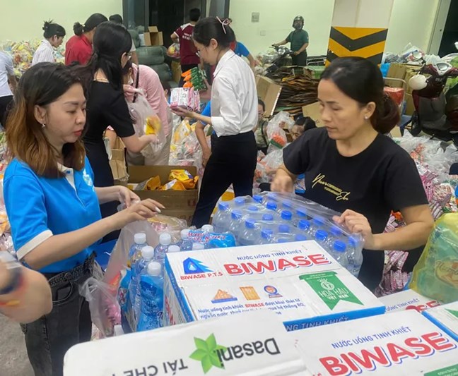 | Người dân đóng gói hàng hoá gửi đến đồng bào bị ảnh hưởng nặng nề do thiên tai |