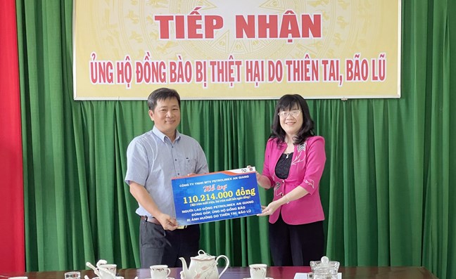 Cùng ngày, Công ty TNHH Một thành viên Petrolimex An Giang đến Ủy ban MTTQ Việt Nam tỉnh An Giang trao số tiền trích từ 1 ngày lương của cán bộ, người lao động công ty ủng hộ đồng bào bị thiệt hại do thiên tai, bão lũ. Tổng số tiền quyên góp là 110,214 triệu đồng.