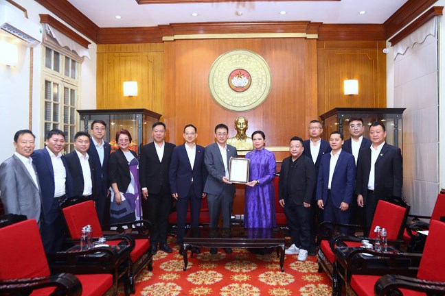 | Bà Hà Thị Nga, Ủy viên Trung ương Đảng, Phó Chủ tịch Ủy ban Trung ương MTTQ Việt Nam tiếp nhận từ Hiệp Hội doanh nghiệp Trung Quốc tại Việt Nam |