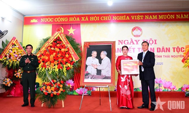 | Đại tướng Phan Văn Giang, Ủy viên Bộ Chính trị, Phó bí thư Quân ủy Trung ương, Bộ trưởng Bộ Quốc phòng dự Ngày hội Đại đoàn kết toàn dân tộc tại tổ dân phố Mỏ Đá (phường Linh Sơn, tỉnh Thái Nguyên). |