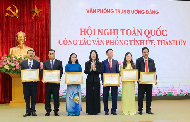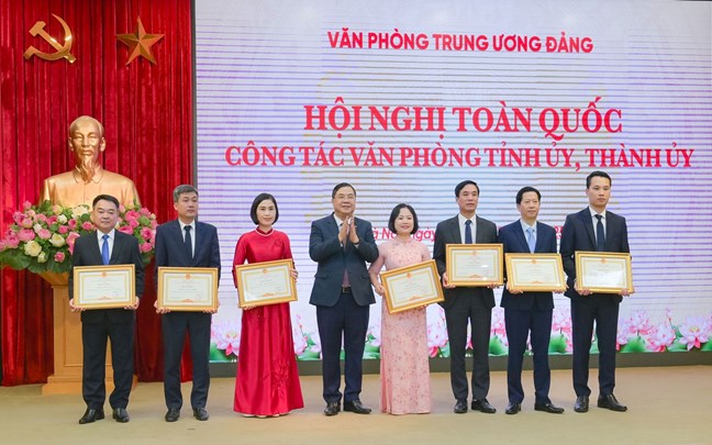 Nhân dịp này, Văn phòng Trung ương Đảng đã tặng Cờ Thi đua cho 5 tập thể; tặng Bằng khen của Chánh Văn phòng Trung ương Đảng cho 14 tập thể và 60 cá nhân có thành tích xuất sắc trong thời gian qua; đồng thời, phát động phong trào thi đua trong thời gian tới./.