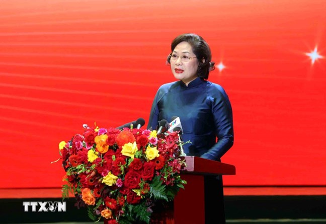 | Thống đốc Ngân hàng Nhà nước Việt Nam Nguyễn Thị Hồng phát biểu. (Ảnh: Phạm Kiên/TTXVN) |