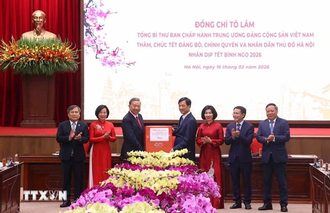 Tiếp đó, trong không khí thân mật, ấm áp, tại Hội trường Thành ủy, báo cáo với Tổng Bí thư về công tác chuẩn bị và tổ chức Tết Nguyên đán Bính Ngọ năm 2026 cho nhân dân, đồng chí Vũ Đại Thắng, Ủy viên Trung ương Đảng, Phó Bí thư Thành ủy, Chủ tịch Ủy ban nhân dân thành phố Hà Nội cho biết, Thủ đô Hà Nội chuẩn bị phục vụ đón Tết Nguyên đán trong không khí vui tươi, phấn khởi và an toàn. Tình hình an ninh chính trị, trật tự an toàn xã hội trên địa bàn Thủ đô được duy trì đảm bảo tốt. Công tác chăm lo, tặng quà người có công, đối tượng gia đình chính sách, người yếu thế cơ bản hoàn thành; chăm sóc sức khỏe nhân dân được chú trọng 24/7, thường xuyên kiểm soát, đáp ứng công tác phòng chống dịch bệnh trên địa bàn. Giao thông được đảm bảo an toàn; công tác vệ sinh môi trường được duy trì… Nhân dân Thủ đô và khách quốc tế vui Xuân, đón Tết văn minh, an toàn, vui tươi.