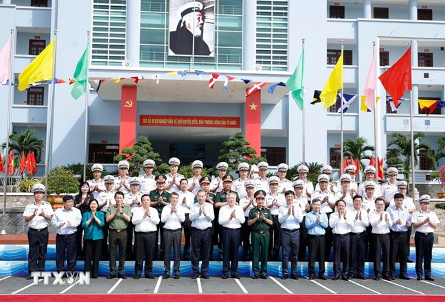 | Tổng Bí thư Tô Lâm đến thăm, làm việc với Bộ Tư lệnh Vùng 5 Hải quân. (Ảnh: Thống Nhất/TTXVN) |