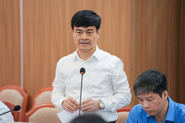 | Ông Lê Văn Nghĩa, Bí thư Chi bộ Ban Quản lý Dự án Công đoàn, Ủy viên Đoàn Chủ tịch Tổng LĐLĐ Việt Nam, Bí thư Chi bộ Ban Quản lý Dự án Công đoàn phát biểu tại hội nghị. Ảnh: Hữu Chánh |