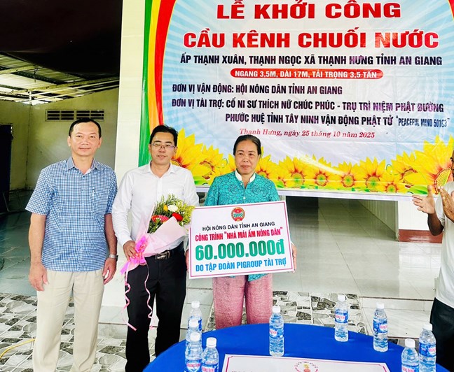Hội Nông dân tỉnh tặng 1 căn Mái ấm nông dân trị giá 60 triệu đồng cho hộ dân trên địa bàn xã Thạnh Hưng, do Tập đoàn PIGROUP hỗ trợ.