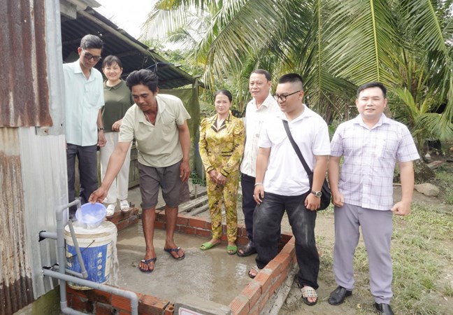 | Người dân xã Giồng Riềng phấn khởi sử dụng nước từ giếng khoan |