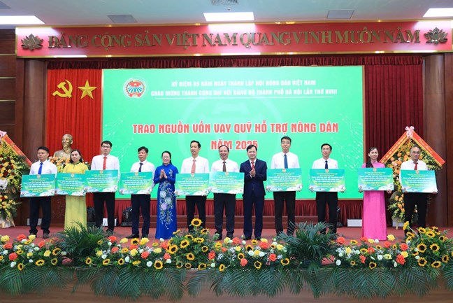 Hội Nông dân thành phố Hà Nội tổ chức trao nguồn vốn vay Quỹ hỗ trợ nông dân năm 2025 cho 79 Hội Nông dân xã phường với tổng số nguồn vốn 341 tỷ 200 triệu đồng, cho 468 dự án để hội viên nông dân phát triển kinh tế, khôi phục sản xuất, khắc phục những khó khăn do ảnh hưởng của cơn bão số 9, 10, 11 vừa qua.