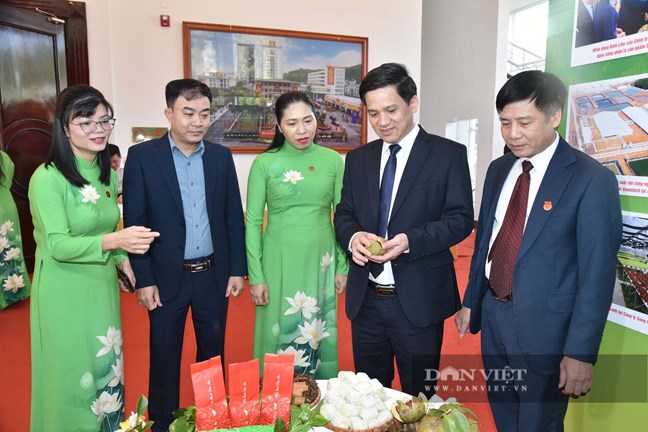 | Lãnh đạo Trung ương Hội Nông dân Việt Nam, lãnh đạo Hội Nông dân tỉnh Quảng Ninh thăm không gian trưng bày tại Đại hội. Ảnh: Bùi My |