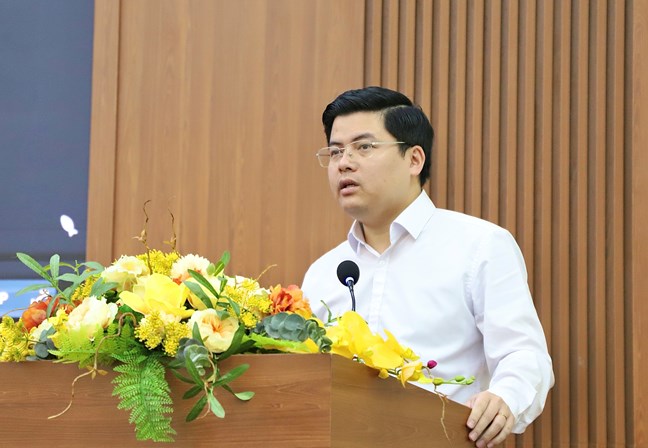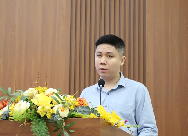 | Đồng chí Hoàng Đức Nam, Ủy viên Ban Chấp hành Trung ương Đoàn, Ủy viên Ban Thường vụ Đoàn Thanh niên Mặt trận Tổ quốc, các đoàn thể Trung ương, Phó Trưởng Ban Công tác Đoàn trình bày chuyên đề |