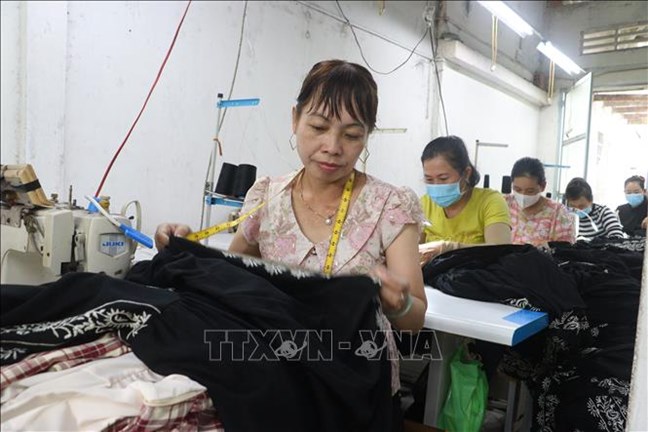 | Chị Nguyễn Thị Hồng Phương (xã Vĩnh Xuân, tỉnh Vĩnh Long) phát triển nghề may gia công đem công việc và thu nhập ổn định cho nhiều hội viên phụ nữ |