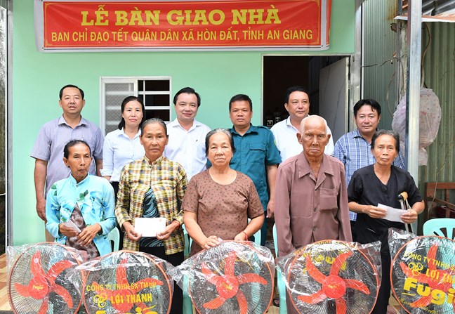 Dịp này, Đảng ủy, UBND xã Hòn Đất trao tặng mỗi gia đình 1 quạt máy; Bí thư Đảng ủy xã Hòn Đất Dương Minh Tâm tặng thêm cho mỗi gia đình 1 phần quà mừng nhà mới.