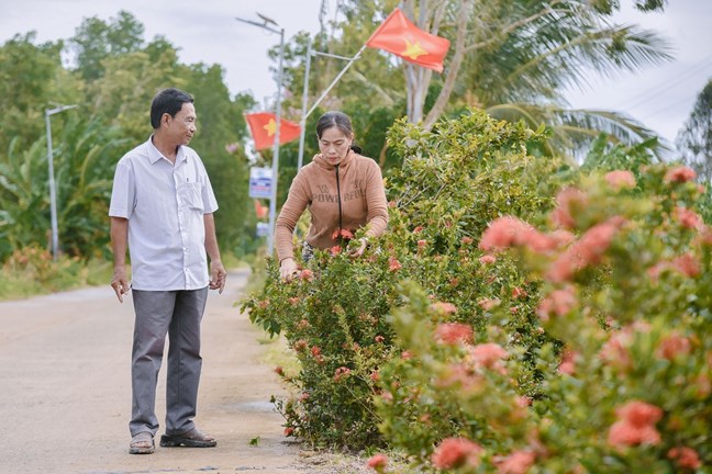| Bí thư Chi bộ, Trưởng ấp Tà Teng Trần Văn Tính vận động người dân tạo cảnh quan nông thôn. |