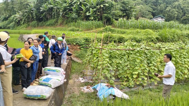 | Mô hình trồng dưa chuột tại xã Tân Tú (Bạch Thông) được các địa phương đến tham quan, học tập kinh nghiệm. |