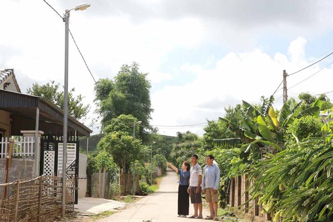 | Đường nội bản Nặm Dên được bê tông hóa và lắp đèn chiếu sáng. |