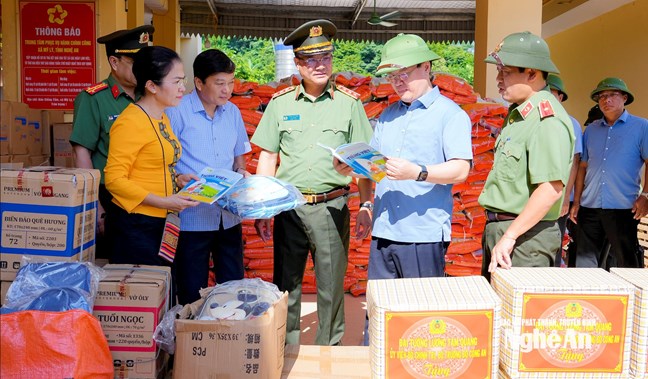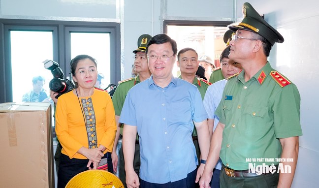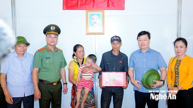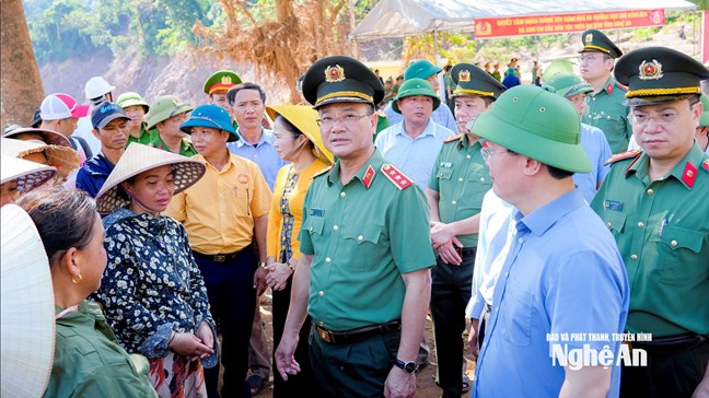Về phía lãnh đạo tỉnh Nghệ An có các đồng chí: Nguyễn Đức Trung - Bí thư Tỉnh ủy; Lê Hồng Vinh - Phó Bí thư Tỉnh ủy, Chủ tịch UBND tỉnh; Võ Thị Minh Sinh - Phó Bí thư Tỉnh ủy, Chủ tịch Ủy ban MTTQ Việt Nam tỉnh, Trưởng Đoàn ĐBQH tỉnh; cùng lãnh đạo Công an tỉnh và các sở, ban, ngành cấp tỉnh; cấp ủy, chính quyền, Ủy ban MTTQ các xã chịu thiệt hại do mưa lũ gây ra.