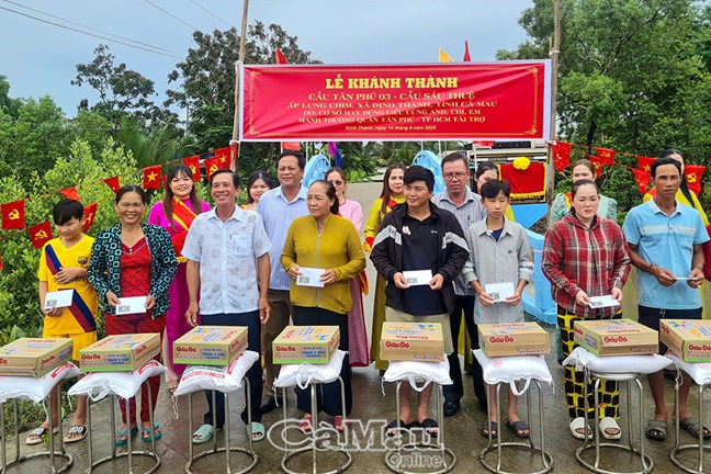 | UBND xã Định Thành vận động mạnh thường quân trao tặng cầu giao thông nông thôn và quà các hộ gia đình có hoàn cảnh khó khăn |
