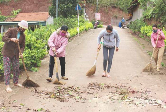 | Hội Phụ nữ thôn Đồng Nhất vệ sinh đường làng, ngõ xóm |