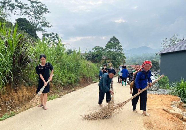 Người dân huyện Si Ma Cai (tỉnh Lào Cai) tham gia quét dọn vệ sinh, giữ gìn môi trường xanh - sạch - đẹp.