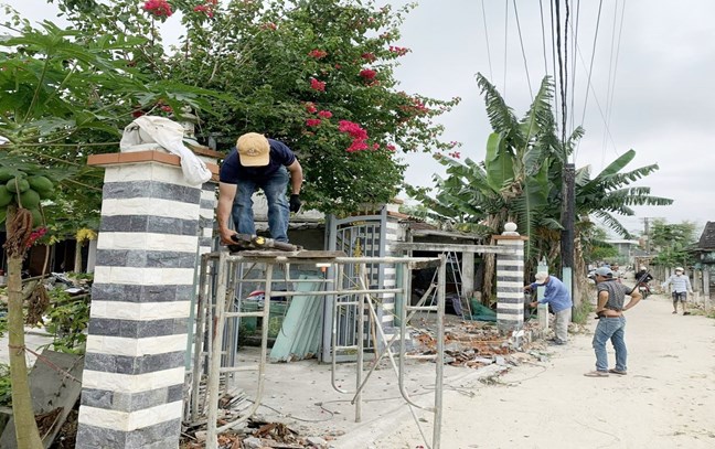 | Người dân xã Xuân Phú tháo dỡ tường rào, vật kiến trúc hiến đất mở đường giao thông nông thôn trên địa bàn. Ảnh: K.H |