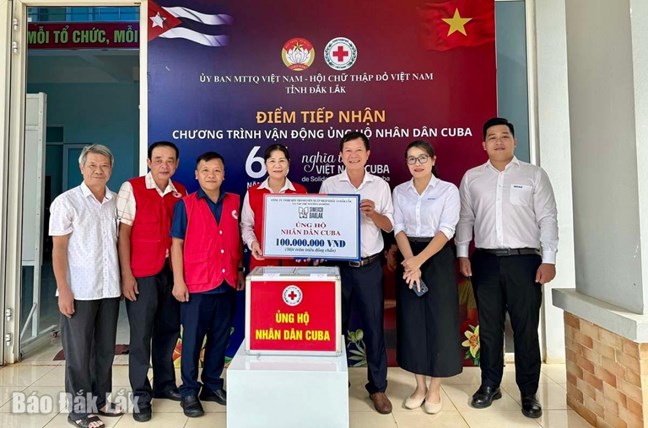 Ngày 19/8, Ủy ban MTTQ Việt Nam tỉnh Đắk Lắk đã phát động chương trình vận động ủng hộ nhân dân Cuba, kéo dài đến hết ngày 16/10/2025. Thư ngỏ kêu gọi được gửi đến toàn thể cán bộ, công chức, viên chức, sĩ quan, chiến sĩ, học sinh, sinh viên, cộng đồng doanh nghiệp và các nhà hảo tâm. Hình thức ủng hộ đa dạng, từ chuyển khoản trực tiếp đến Hội Chữ thập đỏ tỉnh đến đóng góp tiền mặt tại trụ sở hội, tạo điều kiện để mọi người đều có thể chung tay.