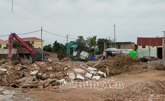| Các hộ dân thôn Đoàn Đào phá dỡ công trình để địa phương bàn giao mặt bằng sạch cho chủ đầu tư dự án đường Tân Phúc - Võng Phan |