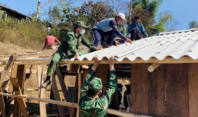 | Các chiến sĩ Bộ đội Biên phòng thuộc Bộ Chỉ huy tỉnh Điện Biên hỗ trợ đồng bào dân tộc thiểu số nghèo tại xã Na Cô Sa (cũ) xây dựng những ngôi nhà mới, góp phần cải thiện cuộc sống và ổn định nơi ở |
