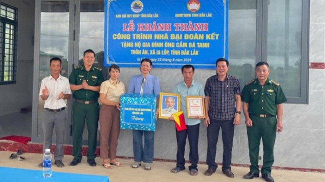 Trước hoàn cảnh đó, Bộ đội Biên phòng và Mặt trận Tổ quốc Việt Nam tỉnh Đắk Lắk đã hỗ trợ xây dựng nhà “Đại đoàn kết” tặng gia đình ông Tanh.