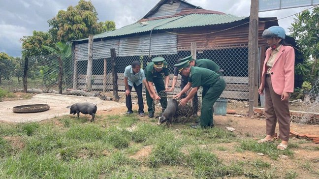 Cán bộ, chiến sĩ Đồn Biên phòng Ea H'leo cùng gia đình thả heo giống